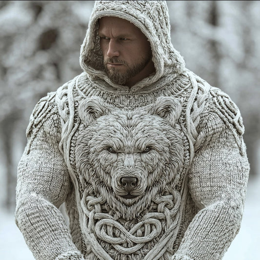 Men's Vintage Viking Bear Celtic Art Knit Hooded Sweater