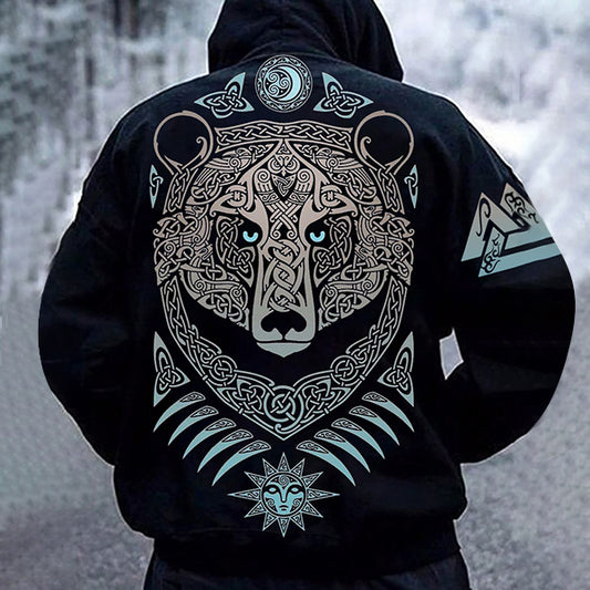 Men's Viking Bear Style Celtic Thick Zip-up Hooded Sweater