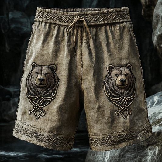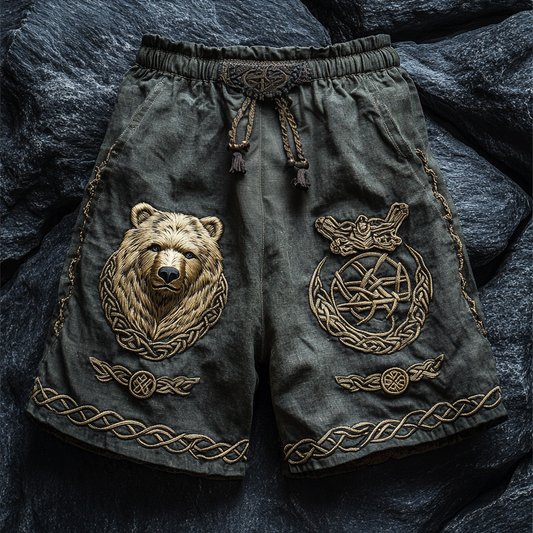 Vintage Nordic Viking Mythology Celtic Knot Bear Head Shorts