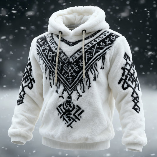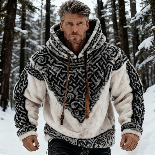 Men's Vintage Viking Inspired Contrast Cozy Plush Hoodie