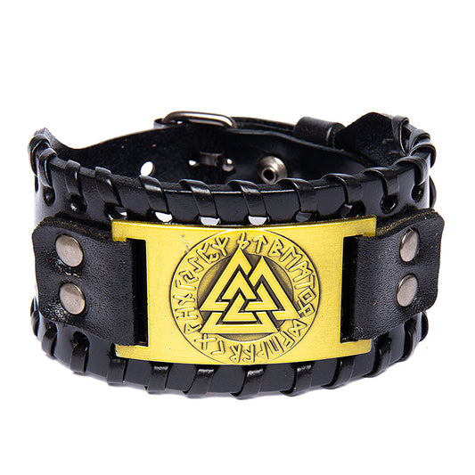 Vintage Viking Symbol Leather Wristband