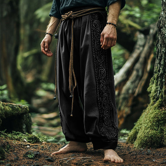 Men's Celtic Wolf Embroidery Wide Leg Pants