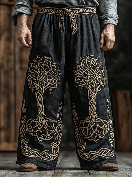 Men's Viking Celtic Tree Of Life Art Linen Blend Wide Leg Pants