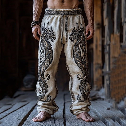 Men's Retro Viking Dragon Celtic Knot Art Linen Pants