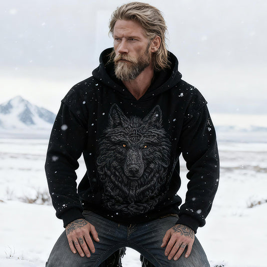 Men's Viking Wolf Totem Knitted Comfortable Hooded Sweater