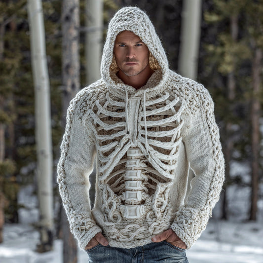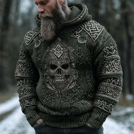 Men‘s Vintage Celtic Skull Cozy Chunky Hooded Sweater