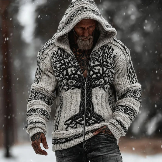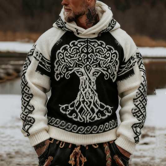 Men's Viking Tribal Tree Of Life Jacquard Knitted Hooded Sweater