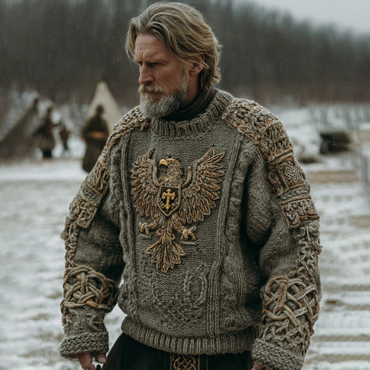 Men's Vintage Viking Celtic Knot Eagle Art Knit Pullover Sweater