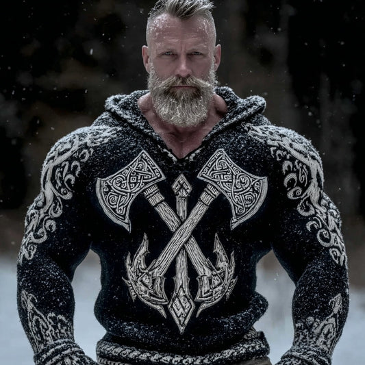 Men's Vintage Viking Axes Celtic Cozy Knit Hooded Sweater