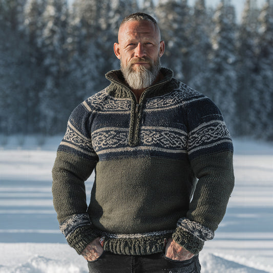 Men's Viking Celtic Knot Pattern Cozy Knit Half Zipped Sweater