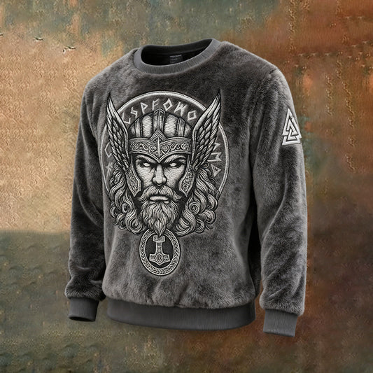Men's Vintage Viking Totem Art Plush Sweatshirt